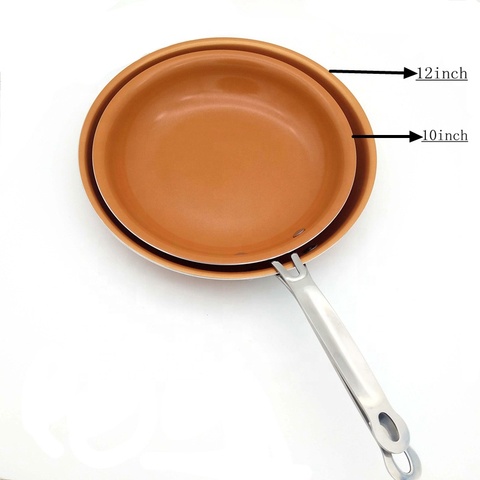 Frigideiras de cobre 10 polegadas com tampa de vidro antiaderente frigideira de indução quadrada profunda